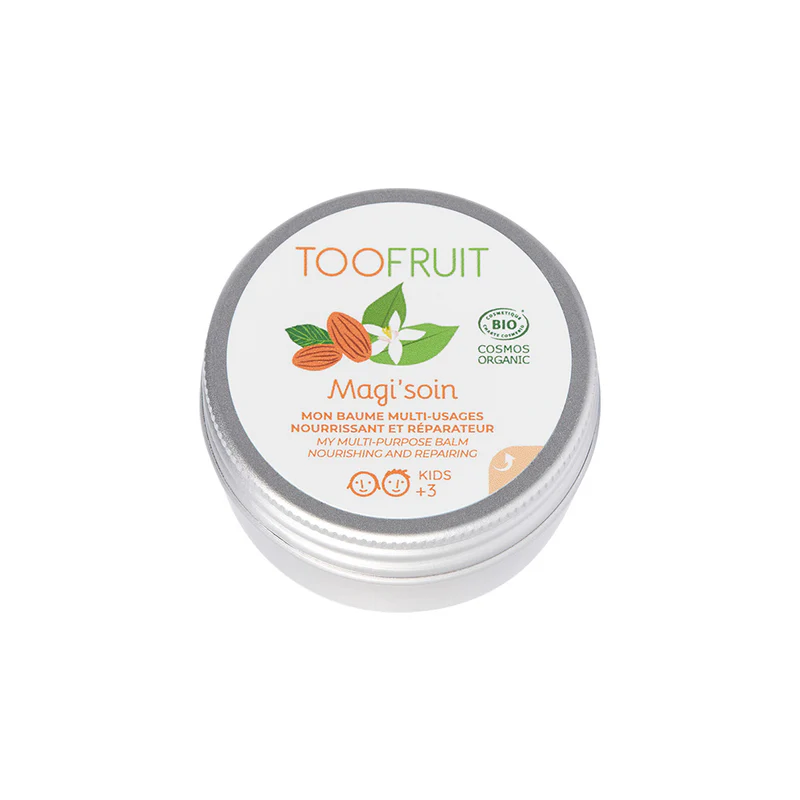 L’application de notre baume multi-usage Magi’soin est un vrai jeu d’enfant ! Je prélève une noisette de baume, je l’applique sur la zone souhaitée et je masse délicatement pour faire fondre le baume jusqu’à pénétration. Pour l’application sur les pointes de cheveux, je prélève une noisette de baume et je la réchauffe dans le creux de ma main avant de l’appliquer. Pensez aussi au baume Magi’soin pour réaliser des massages ludiques et sensoriels, le temps d’une pause bien-être parent-enfant à la maison ! Magi’soin, c’est le petit baume magique qui fait tout : pour les bobos du quotidien, les zones sèches ou les expéditions en pleine nature. Bref, le soin malin à toujours avoir sous la main !